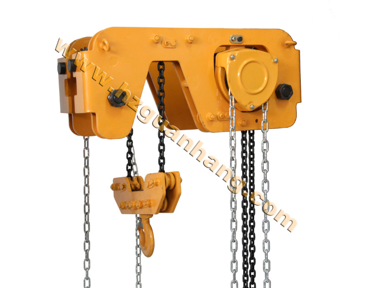 低凈空手拉葫蘆設(shè)計合理,起吊平穩(wěn),運行靈活,適用不同寬度軌道的無電凈空低場所。